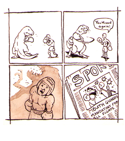 Gavin McCarthy enjoys comics, video games, movies and improv. He is a recent graduate from Toronto's Sheridan College and currently works in Toronto. He really, really likes coffee - a habit he picked up in Italy, along with an obsession for Pesto and salt cured pork. You can visit him online at: artbygavin.com