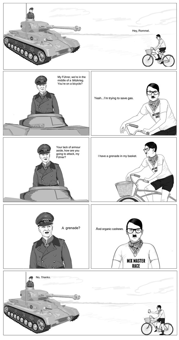 Hipster Hitler is strictly a parody, satire and humour site. All content therein should be treated as such. If you have any questions, comments or death threats, be sure to email the creators of that site at hipsterhitler@gmail.com.