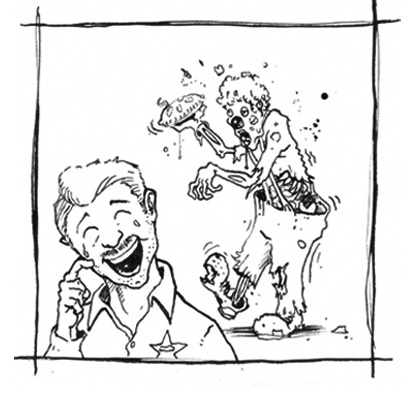 Zombie Clown By Gavin McCarthy on March 4, 2012 in Cartoons Paralyzed by laughter, Sherrif Bob was helpless against the zombie clown.